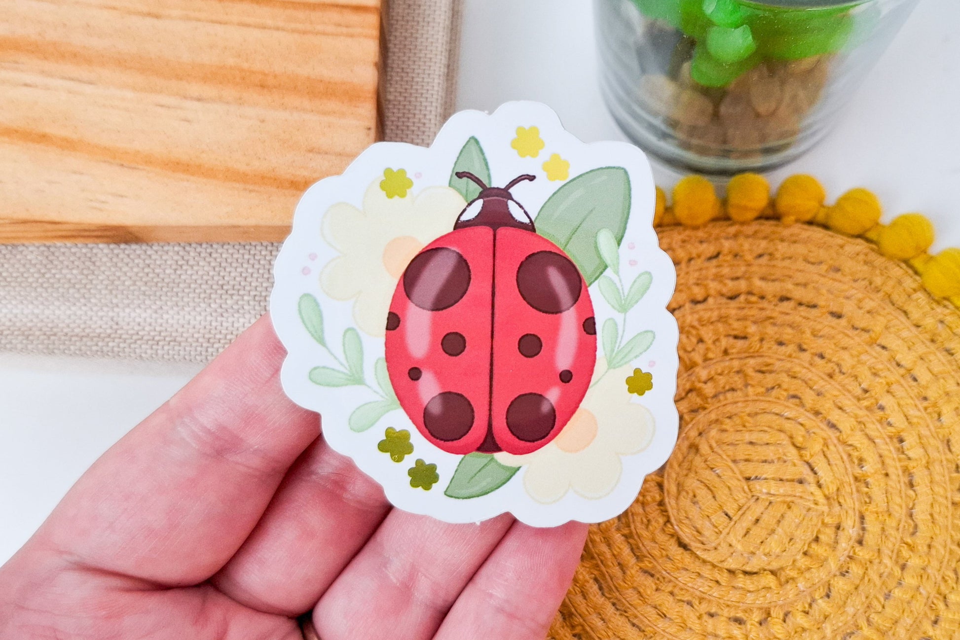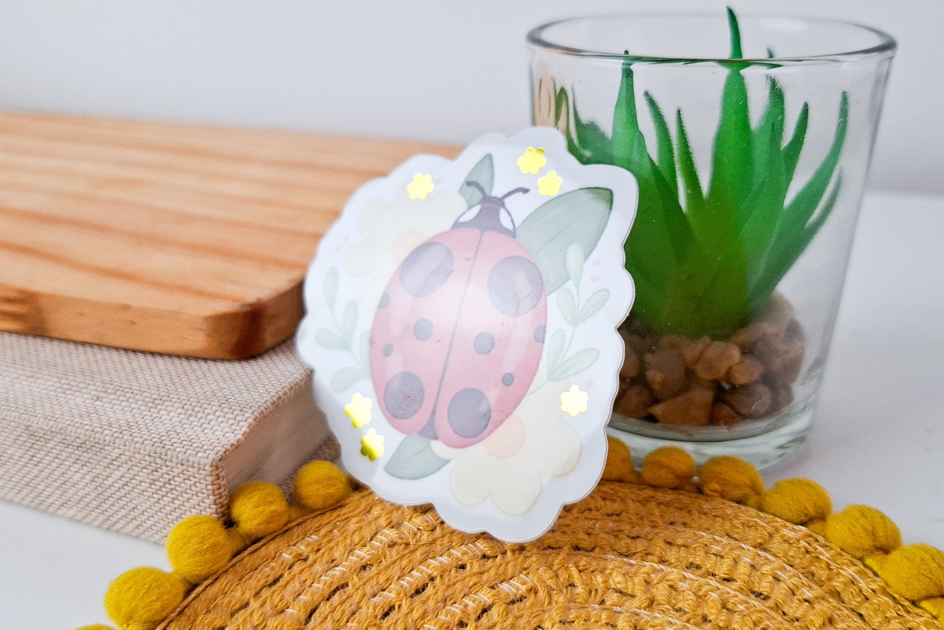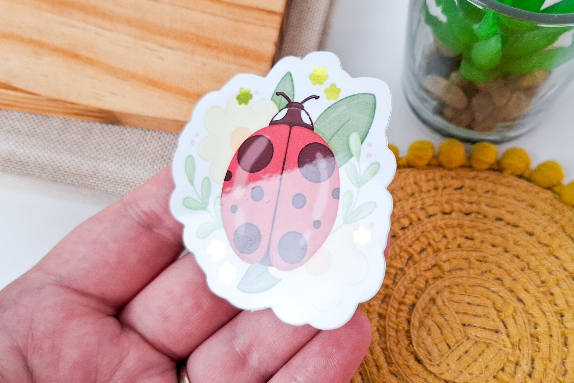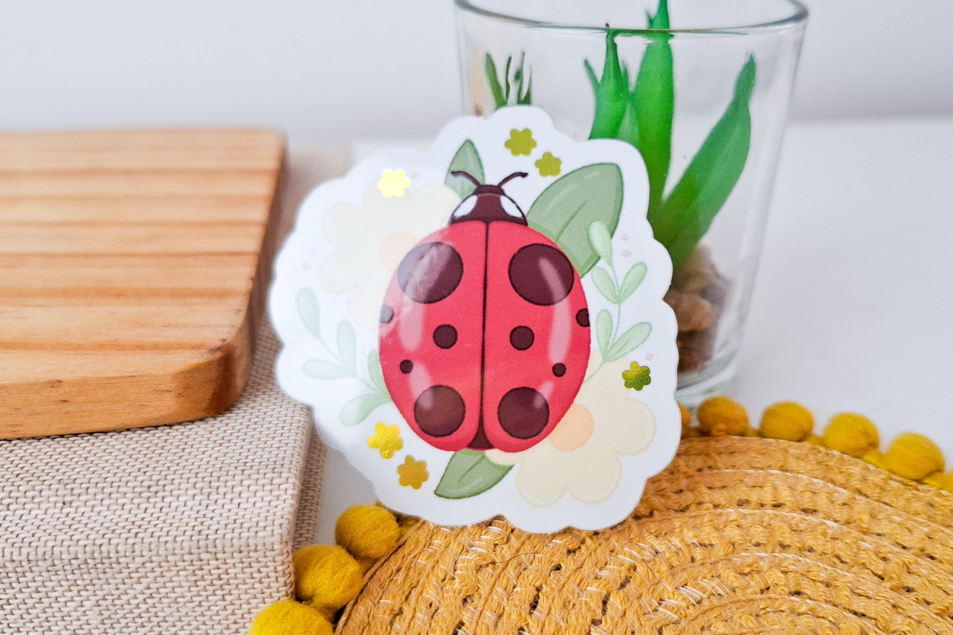 A gorgeous ladybug sticker with a touch of gold sparkle!