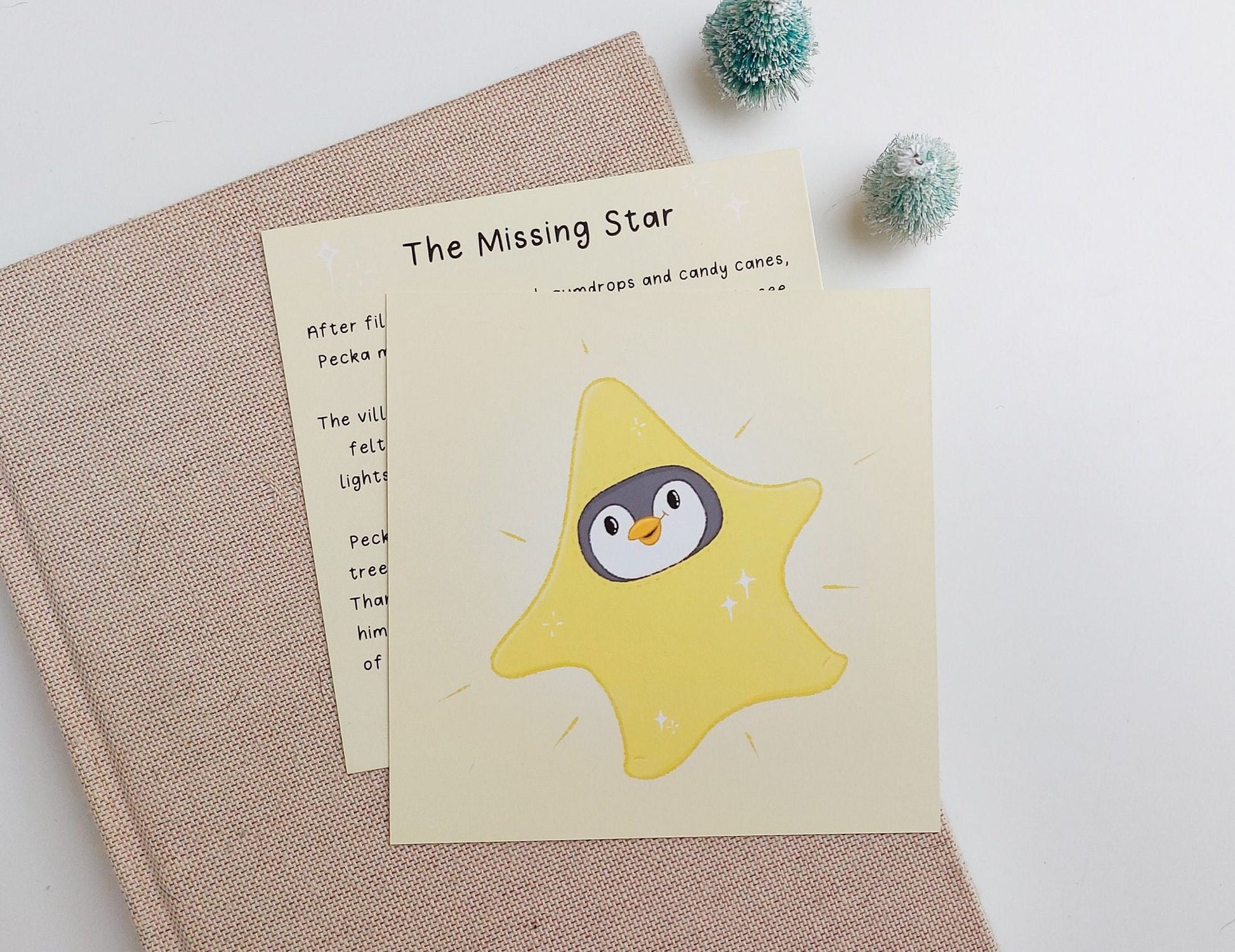 This story postcard is part of the Pecka in Wonderland collection which is all about a cute penguins adventures in wonderland! There are other postcard, decoration and pin designs available to shop too! The perfect gift for any penguin lover.