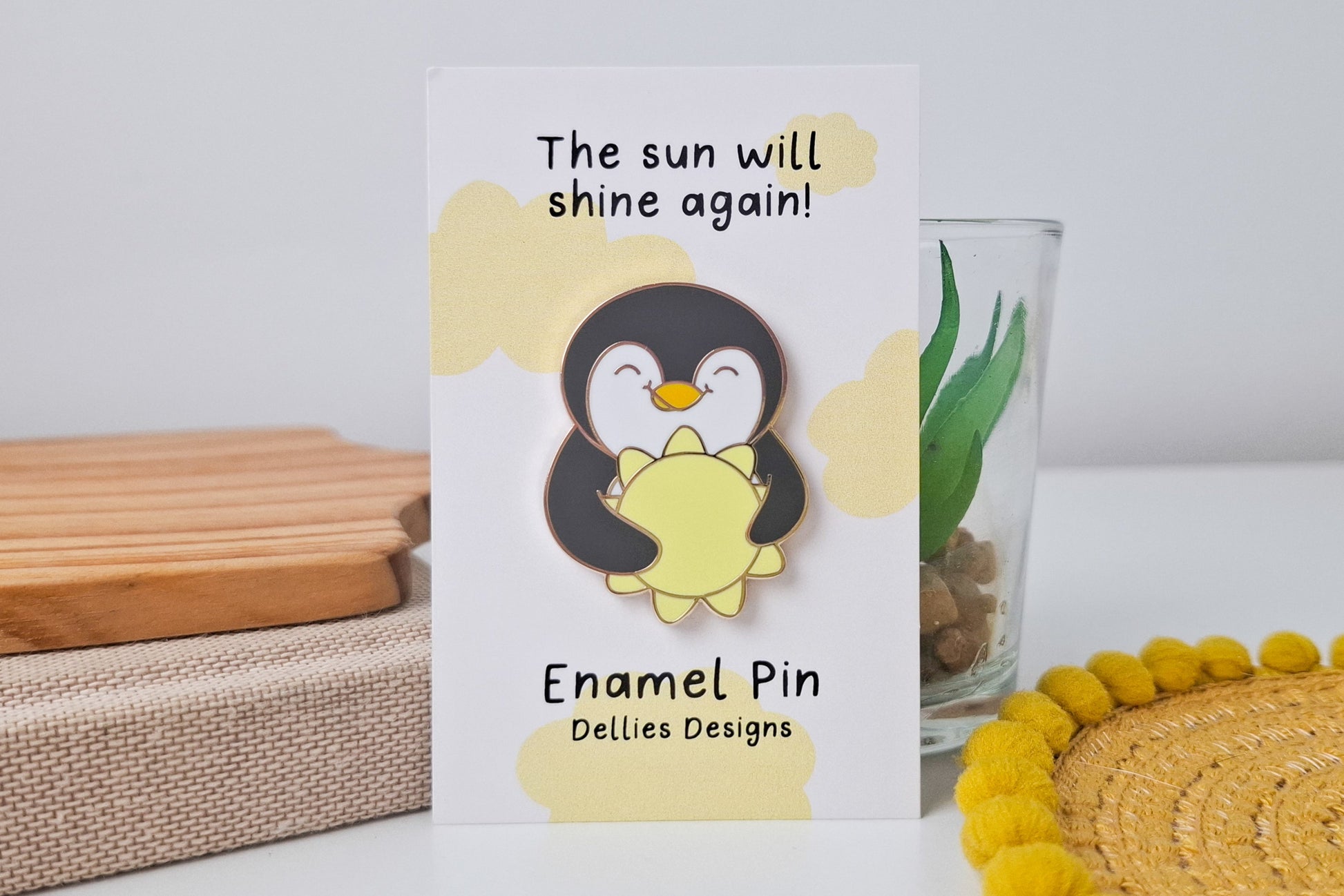 The sun will shine again! A gorgeous little reminder that better days are coming in the form of an adorable Pecka penguin pin!